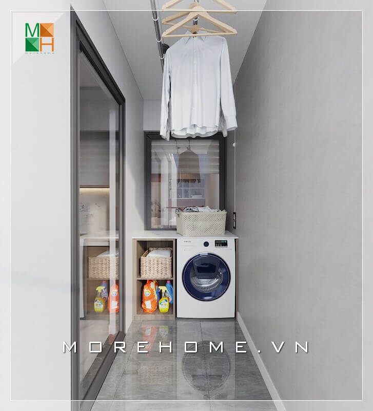 Có thể tận dụng hành lang trống trong nhà đặt một chiếc máy giặt hiện đại, vừa tận dụng được khoảng trống vừa đảm bảo sự tiện nghi khi sinh hoạt